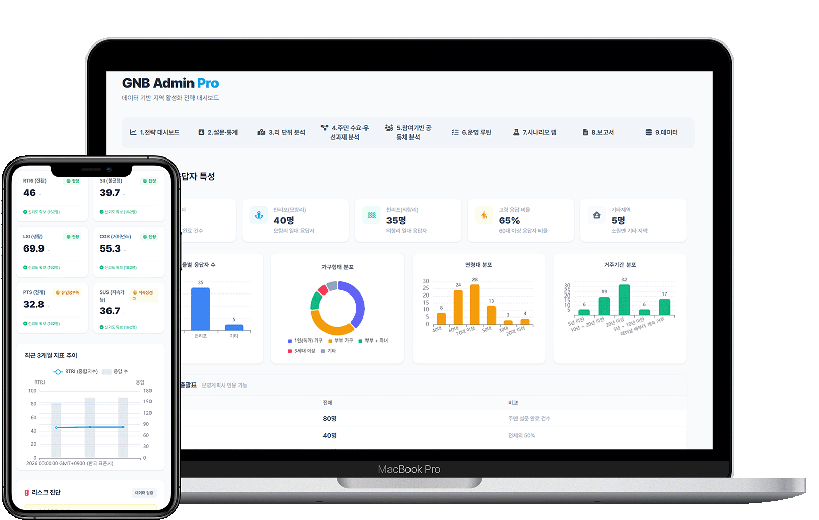 방대한 공공 데이터와 조사 결과를 직관적인 인터랙티브 차트와 리포트로 전환. 의사결정자가 데이터에서 인사이트를 즉시 도출하게 합니다.
